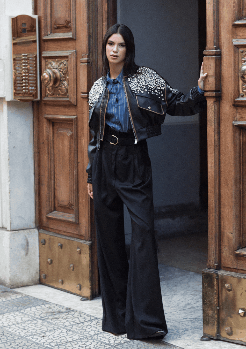 BOMBER ECO‐PELLE STRASS RICAMATI A MANO