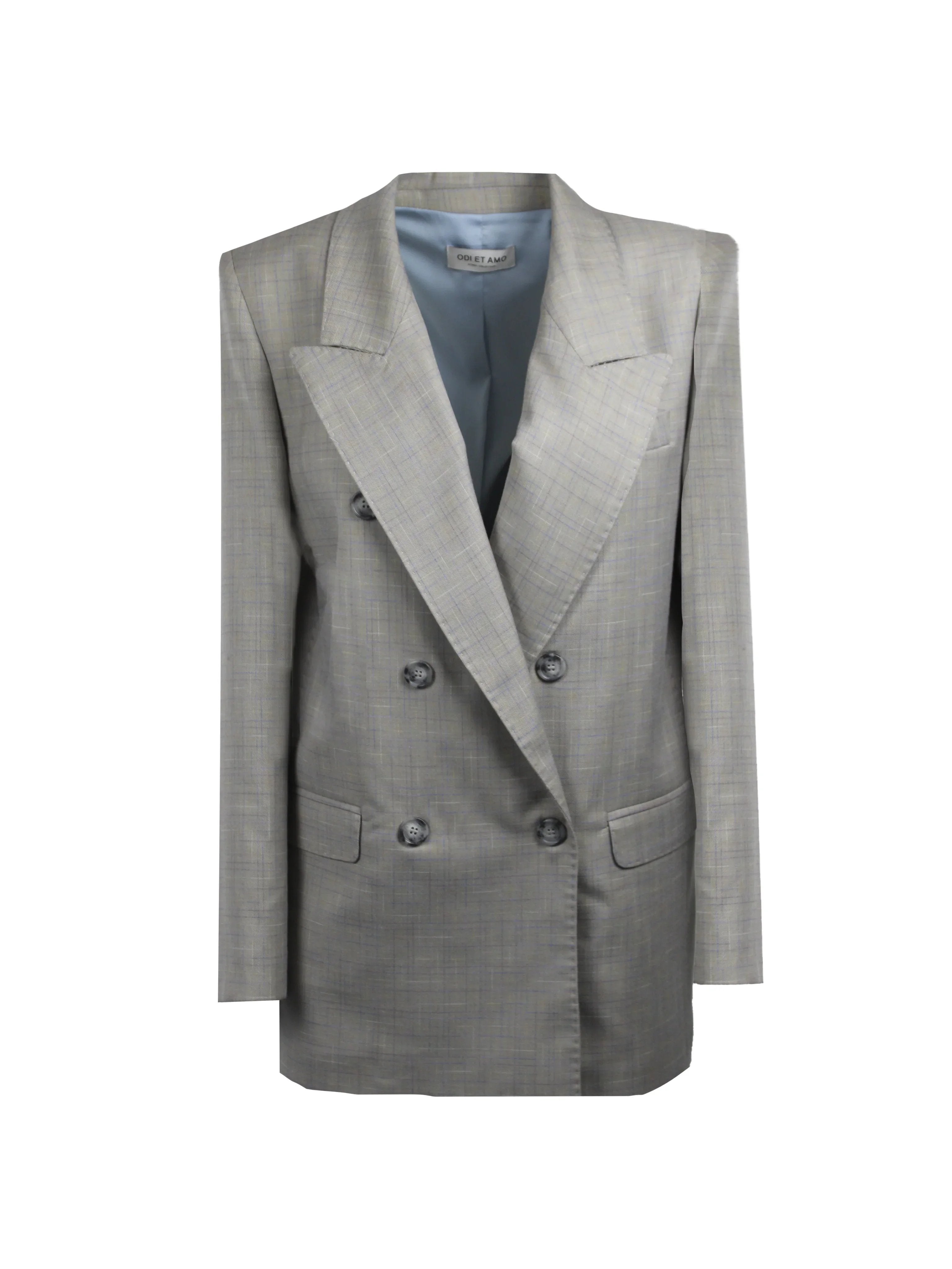 DOUBLE-BREASTED CHECKED PRINT BLAZER WITH CUSTOM BUTTONS