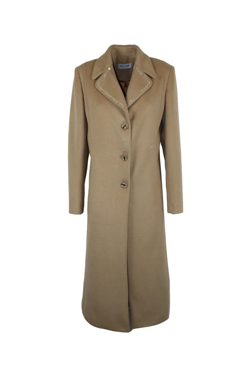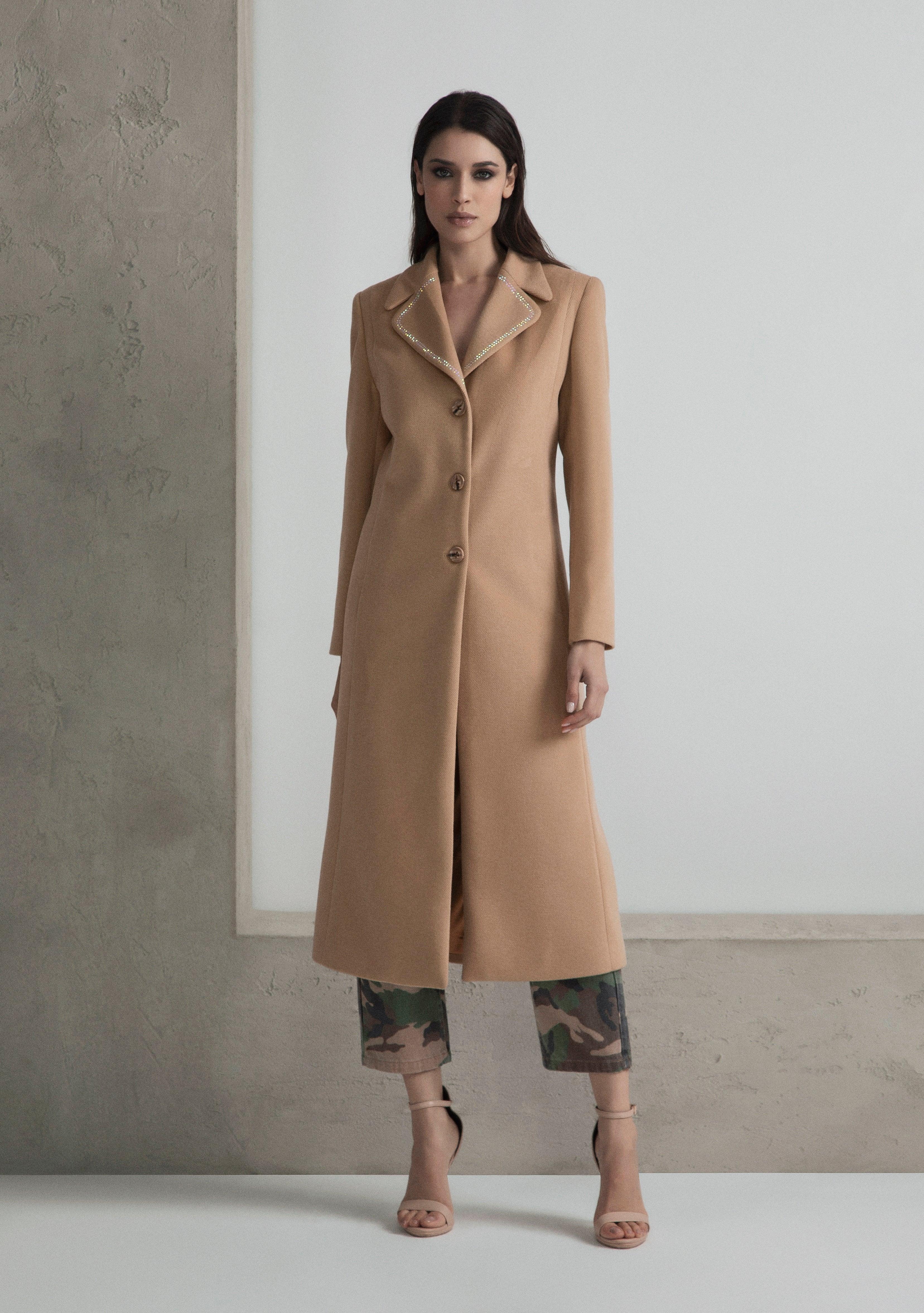 LONG SINGLE-BREASTED COAT WITH RHINESTONE