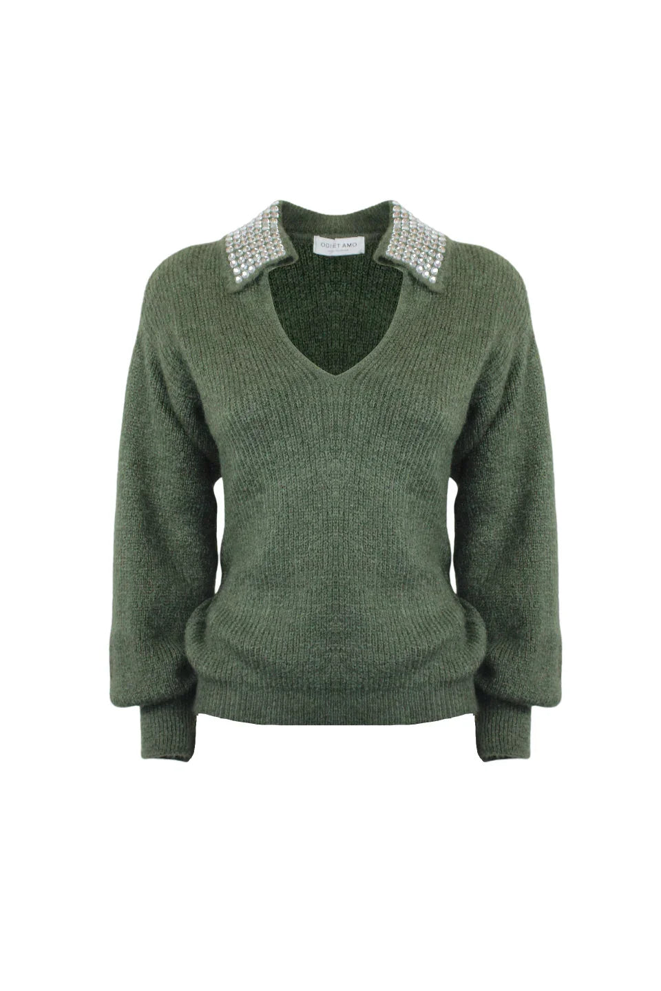 Collar with crystals Long sleeve with ribbed cuff Slim fit Made in Italy Wool and mohair blend SKU: ACOD0107 Read more