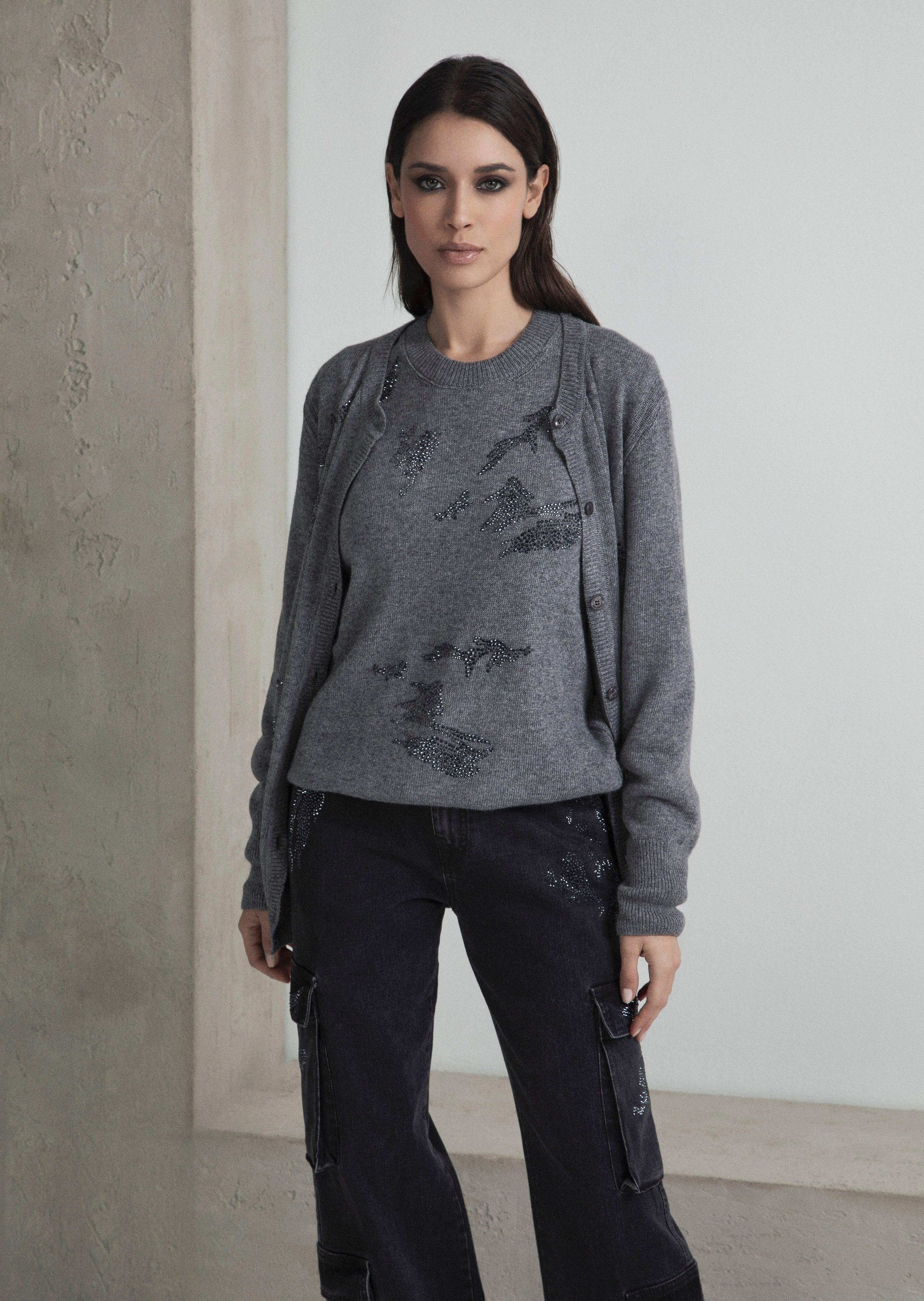 Made of a wool and cashmere blend Round neckline Relaxed fit Camouflage design crystal application Made in Italy SKU: ACOD0080... Read more