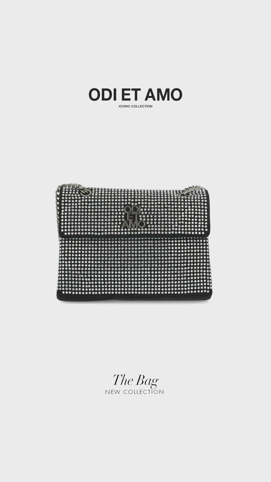 Borsa a tracolla realizzata in tessuto impreziosito da cristalli argentati creando un gioco di luce che attirerà subito l'attenzione.