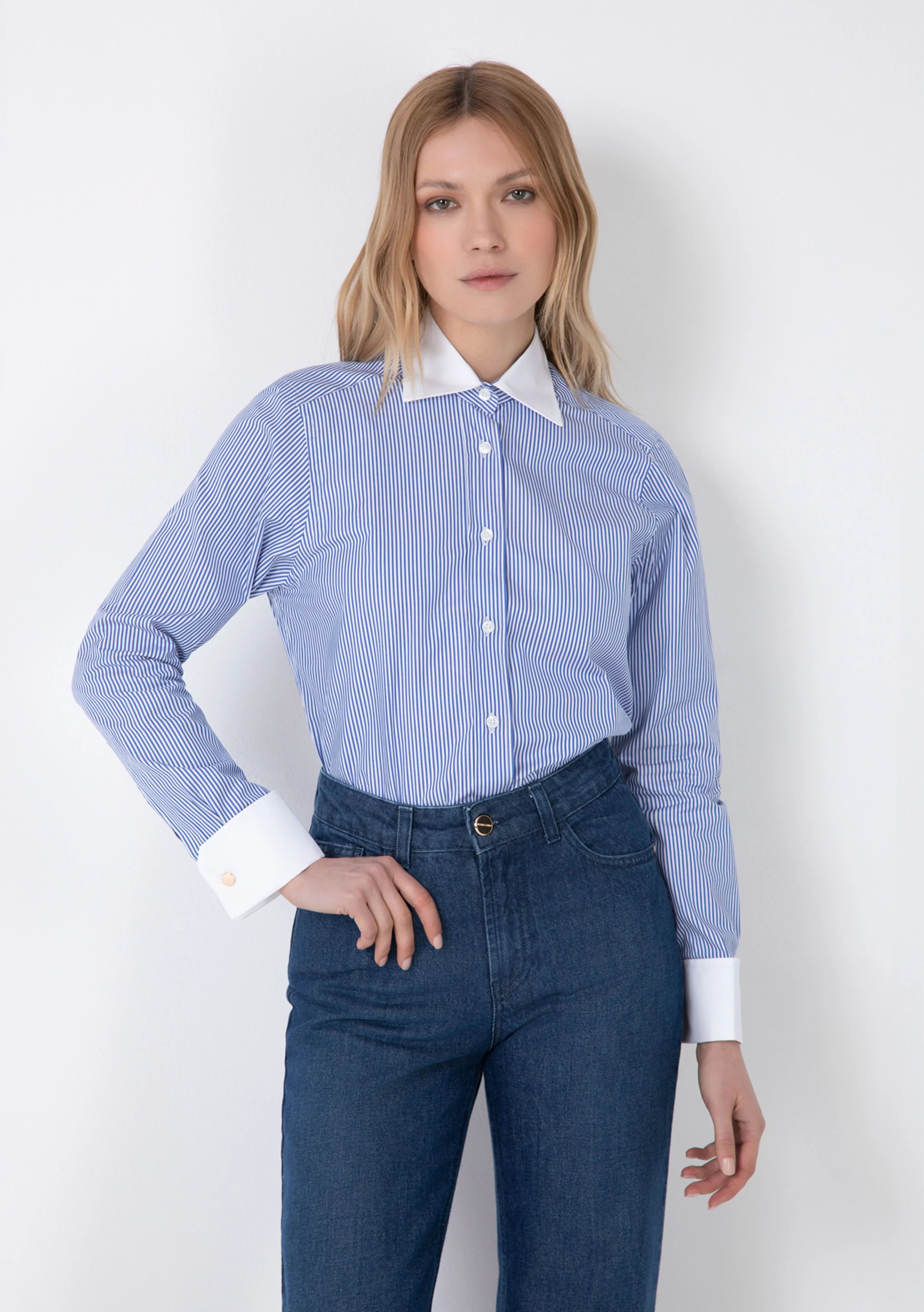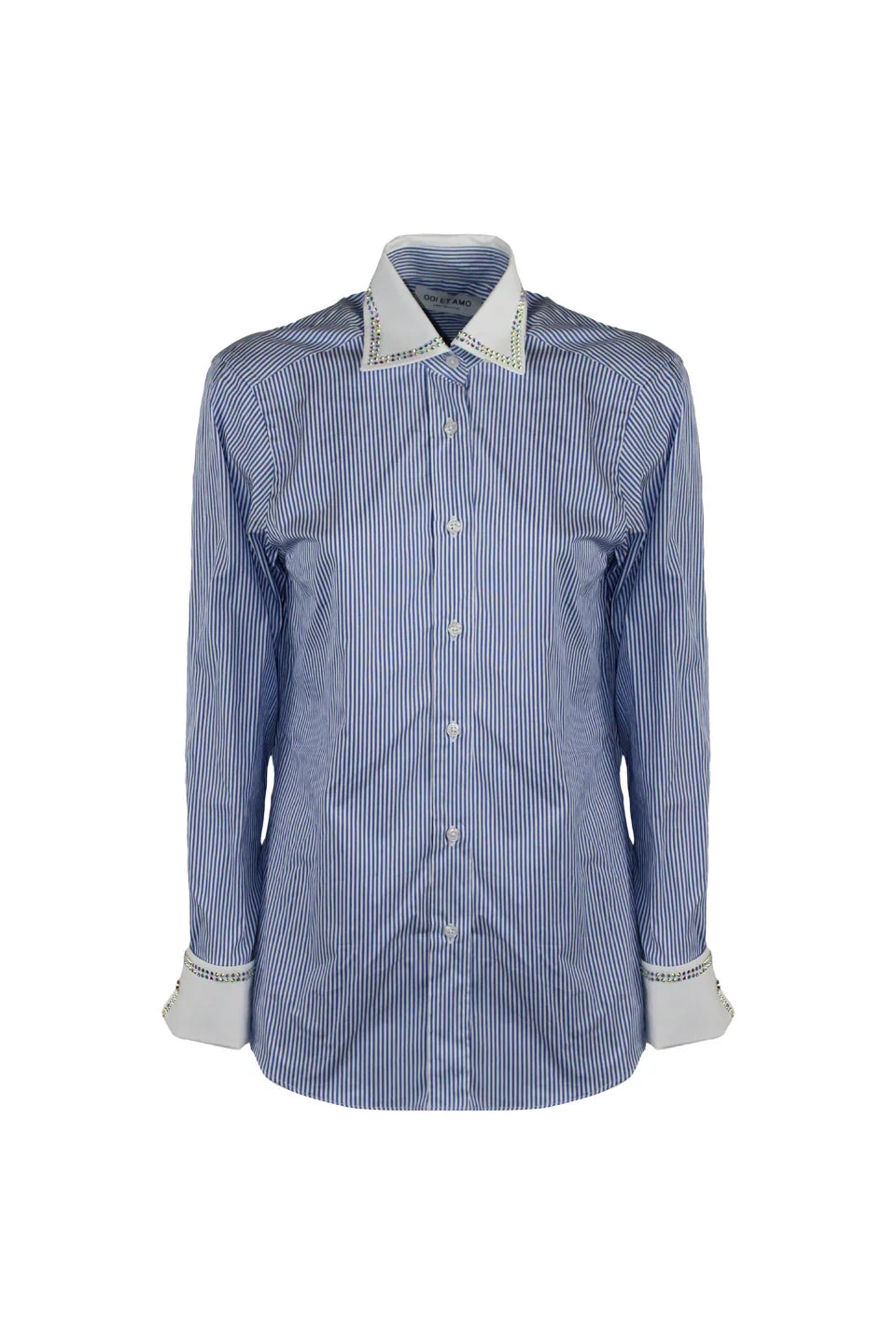 STRIPED OXFORD SHIRT WITH RHINESTONE ON THE COLLAR AND CUFFS