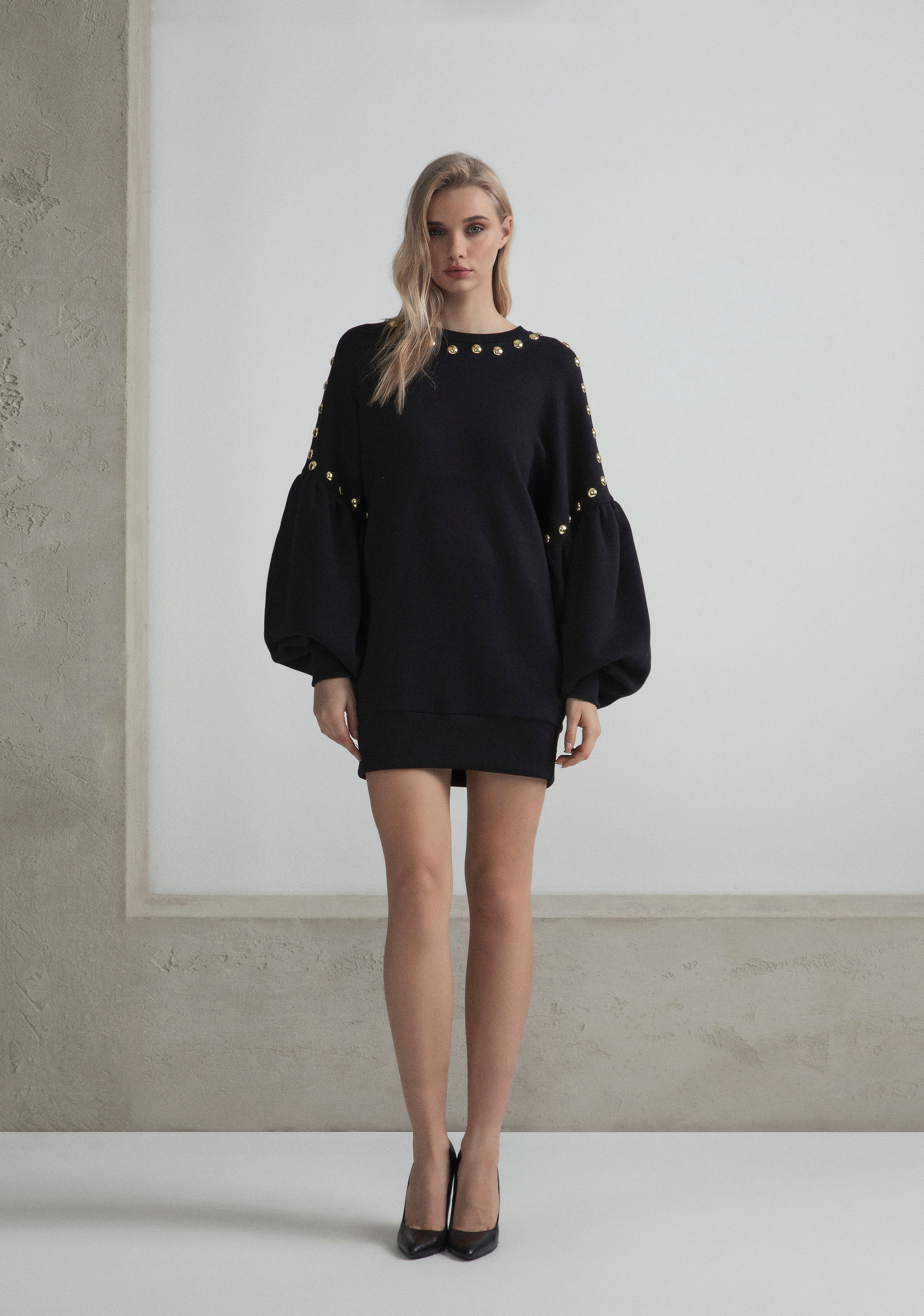 BALLOON SWEATSHIRT DRESS WITH GOLD STUDS