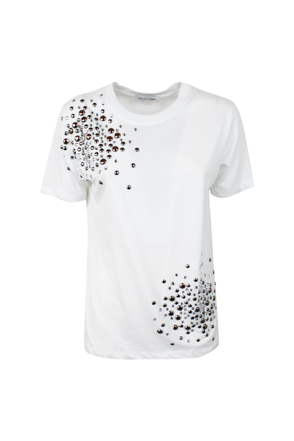 Choker Short sleeve Normal fit Crystal and stud detail applied on the front Made in Italy 100% cotton SKU: ACOD01... Read more