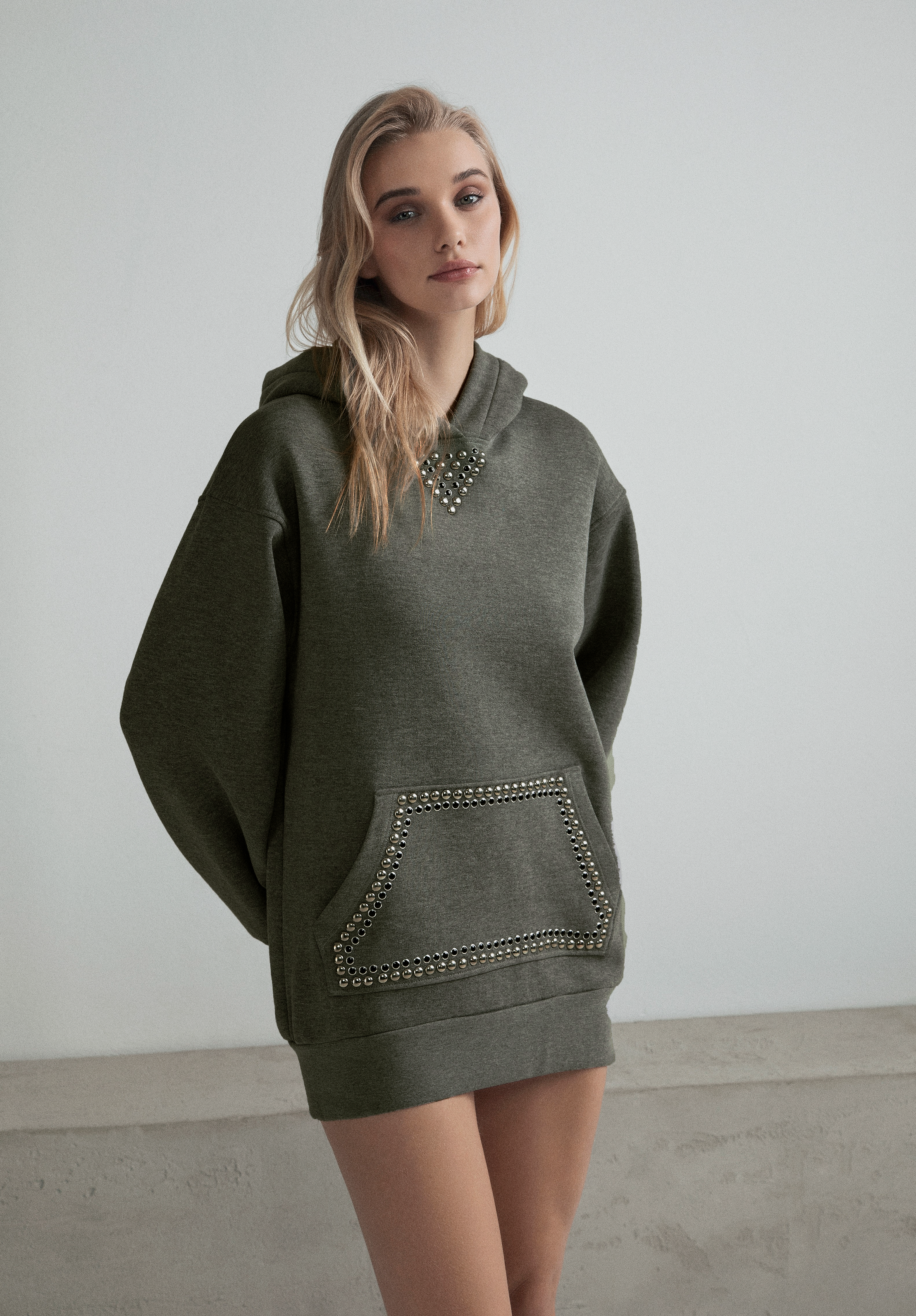 Design con cappuccio e maniche lunghe Jersey di cotone Dettagli con borchie sul davanti Vestibilità oversize con spalle scese Polsini... Per saperne di più