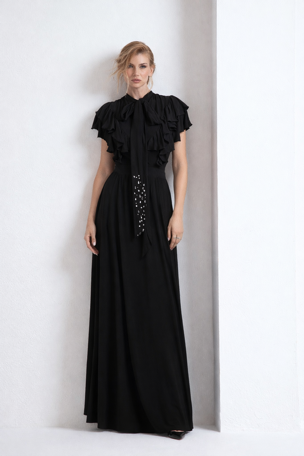 ABITO LUNGO CON FIOCCO E ROUCHES